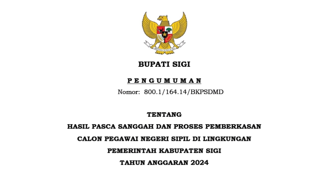 Bupati Sigi nomor : 800.1/60.06/BKPSDMD tanggal 12 Januari 2025 tentang Hasil